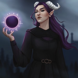 Kangagi97 Women Fantasy Girl Purple Hair Pointy Ears Elves Brown Eyes Dress Black Dress Artwork Fan Art Digital Art 900x1298 Wallpaper Wallhaven Cc